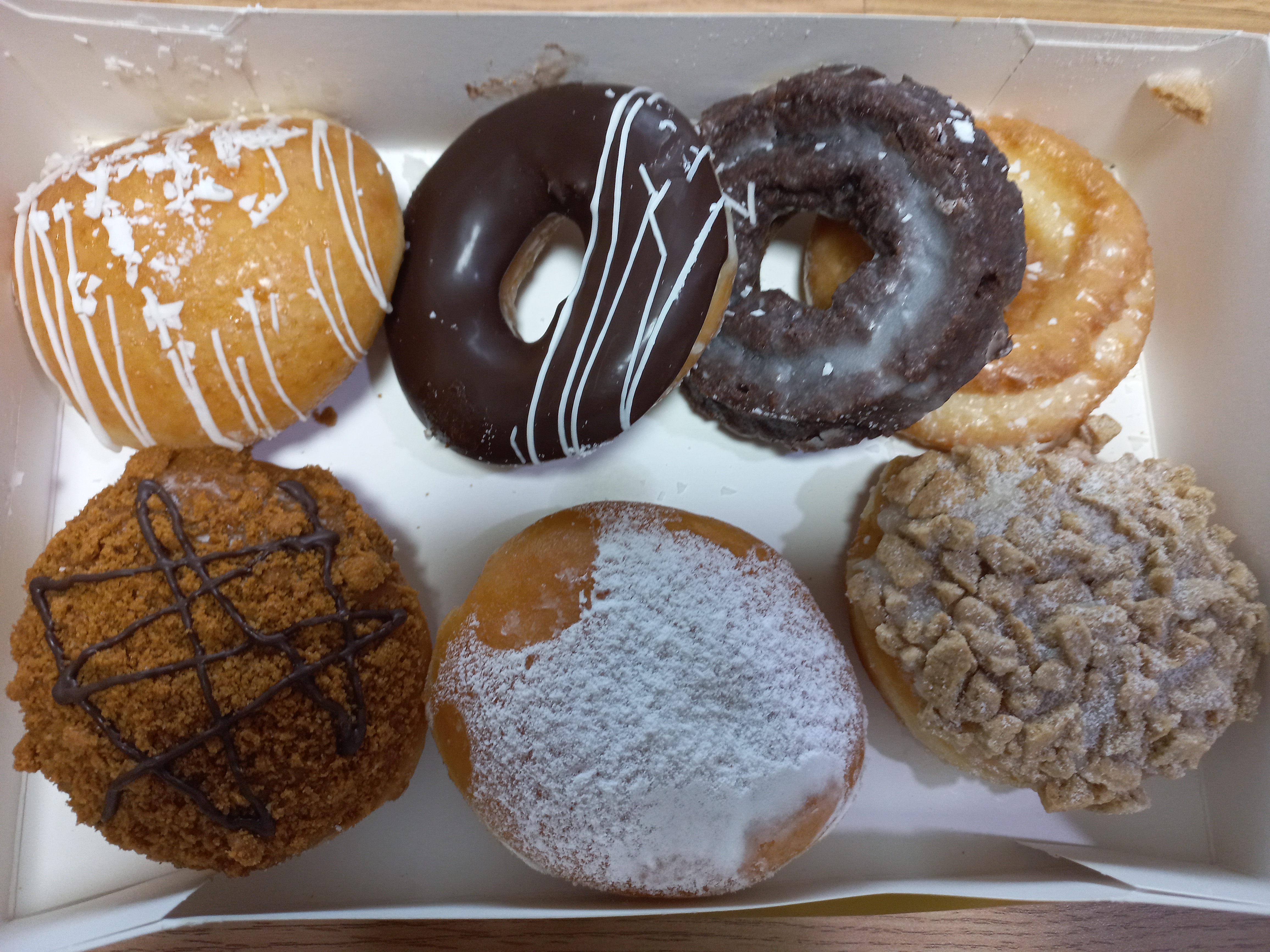 '우유크림 듬뿍', '초콜릿 아이스드 글레이즈드', '글레이즈드 초콜릿 케익', '글레이즈드 사워 크림', '로투스 비스코프 도넛', '프리미엄 스트로베리 필드', '뉴욕 치즈케익' 이었다~
