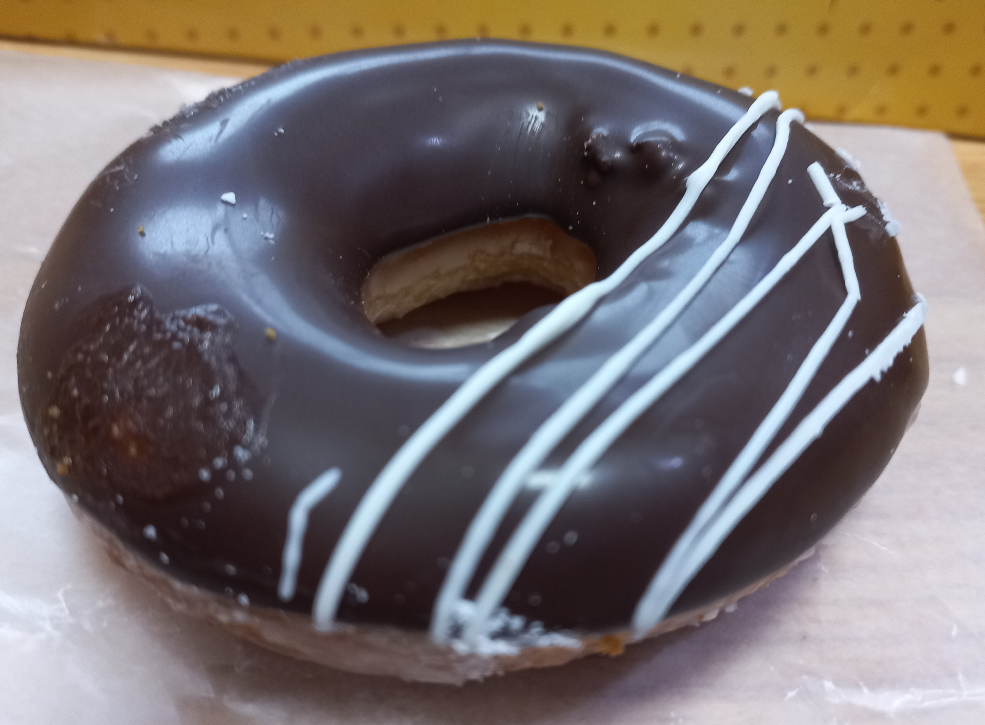 글레이즈드도넛 위에 초콜릿이 발려있는 형태였다