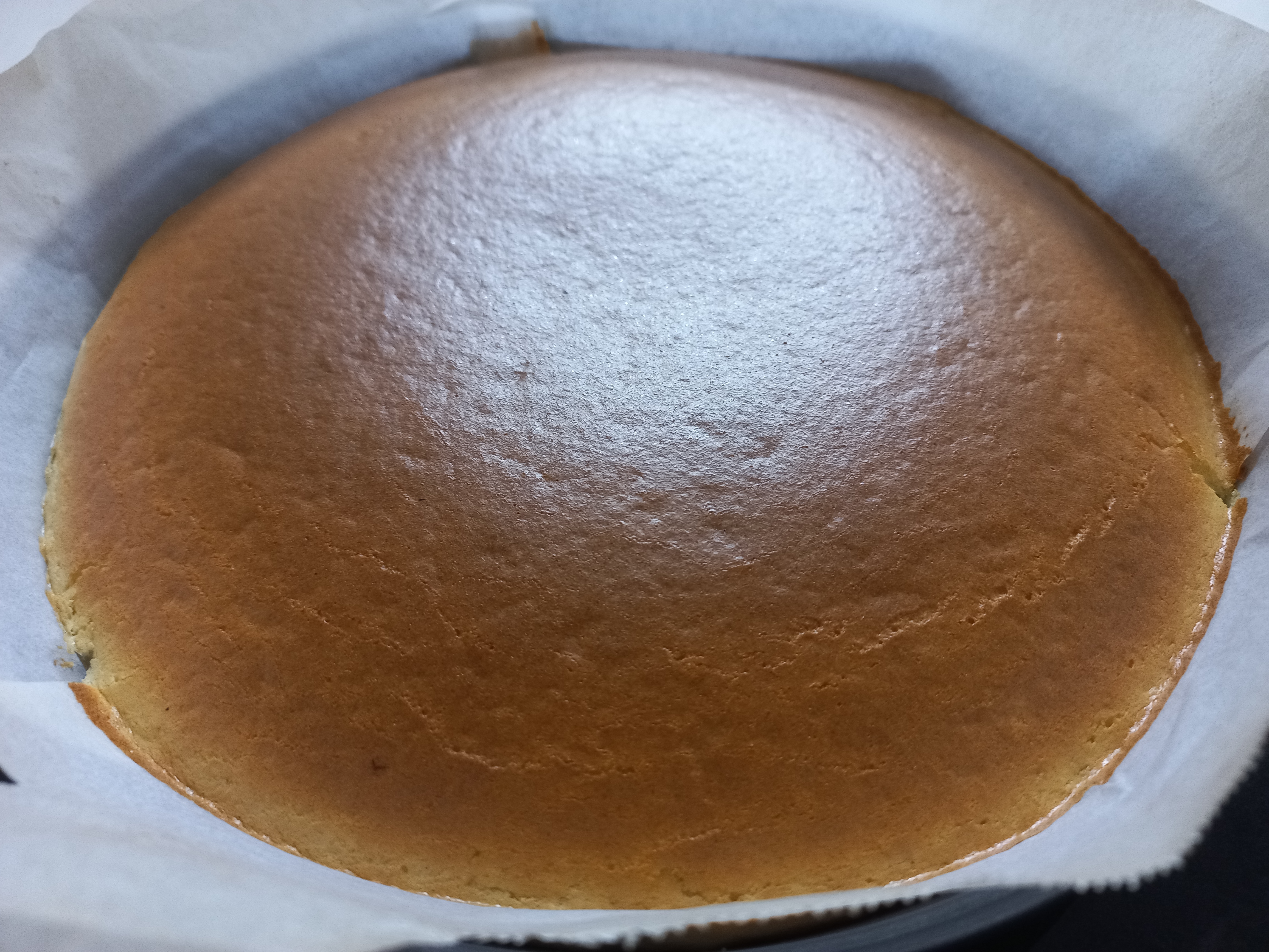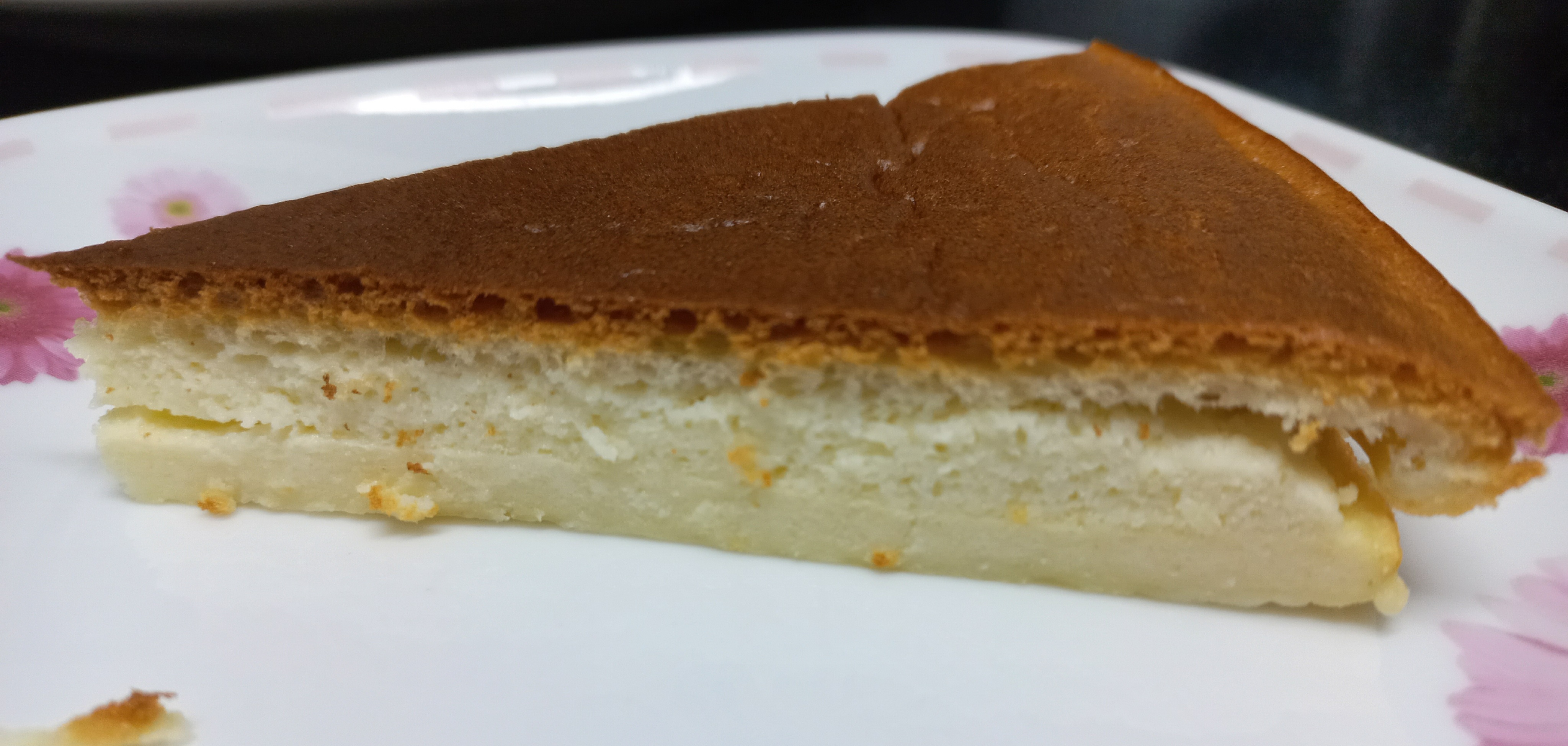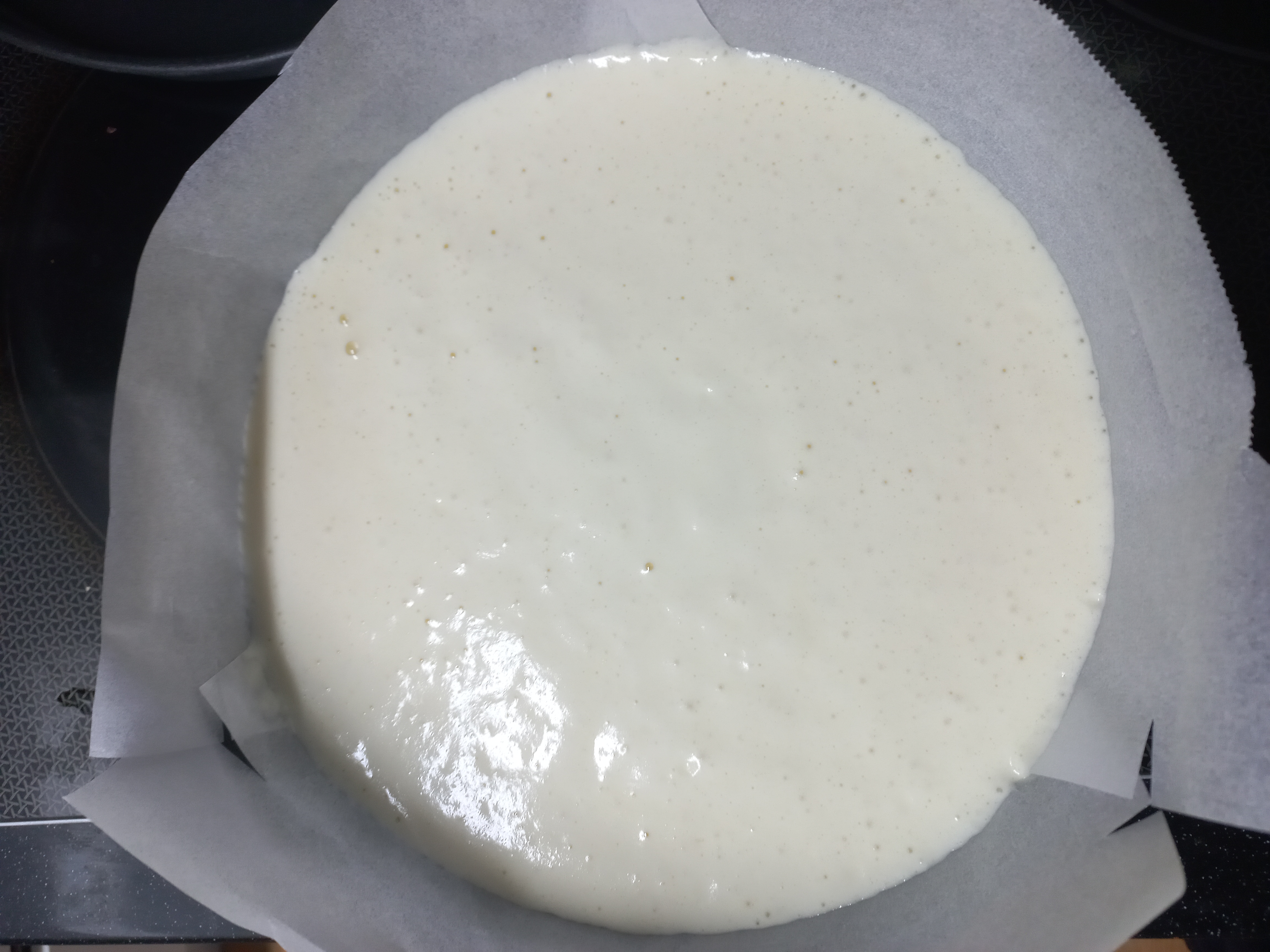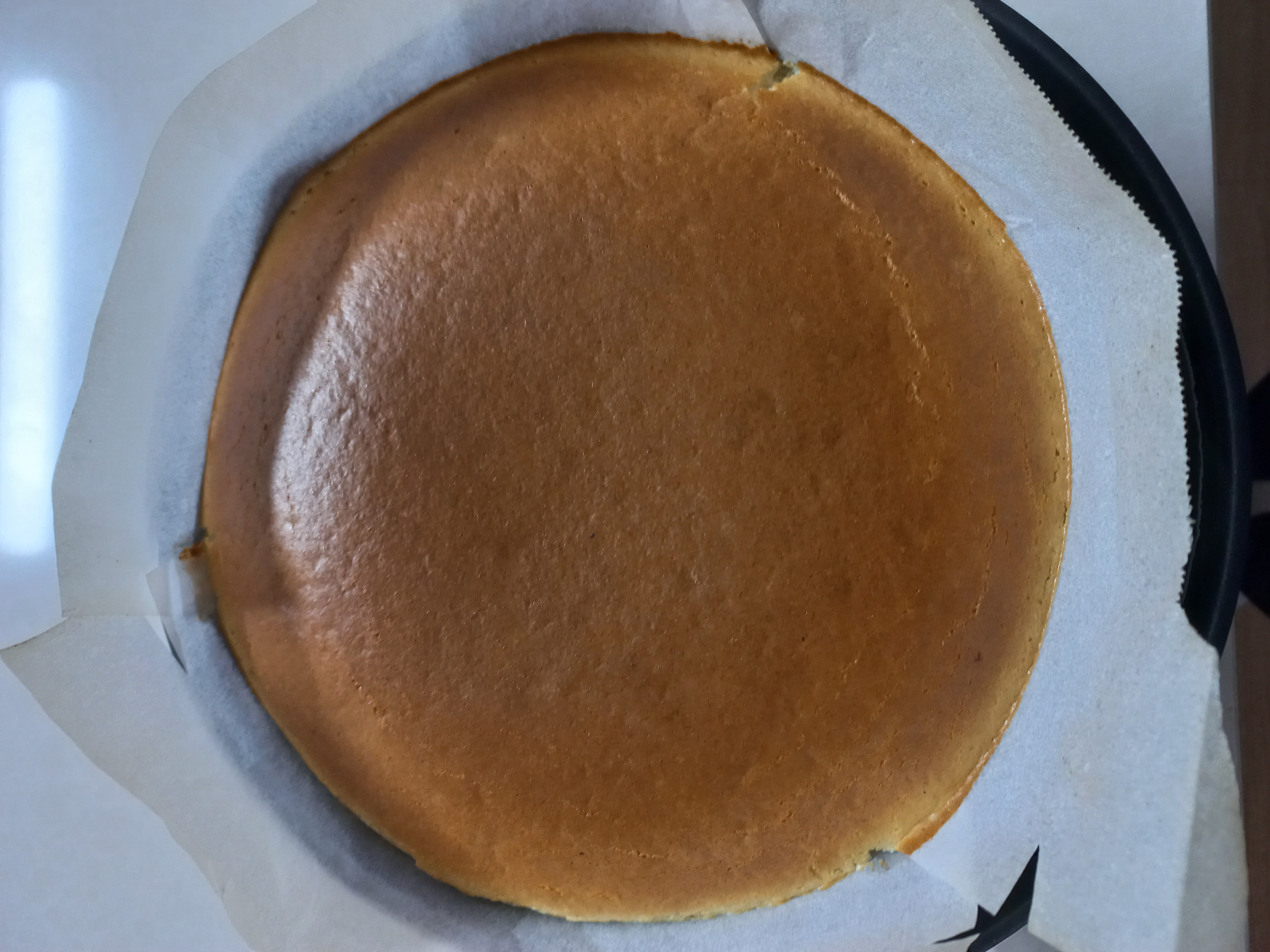 오븐용 용기가 바닥이 넓어서 치즈케이크의 두께가 꽤나 얇게 되었다
