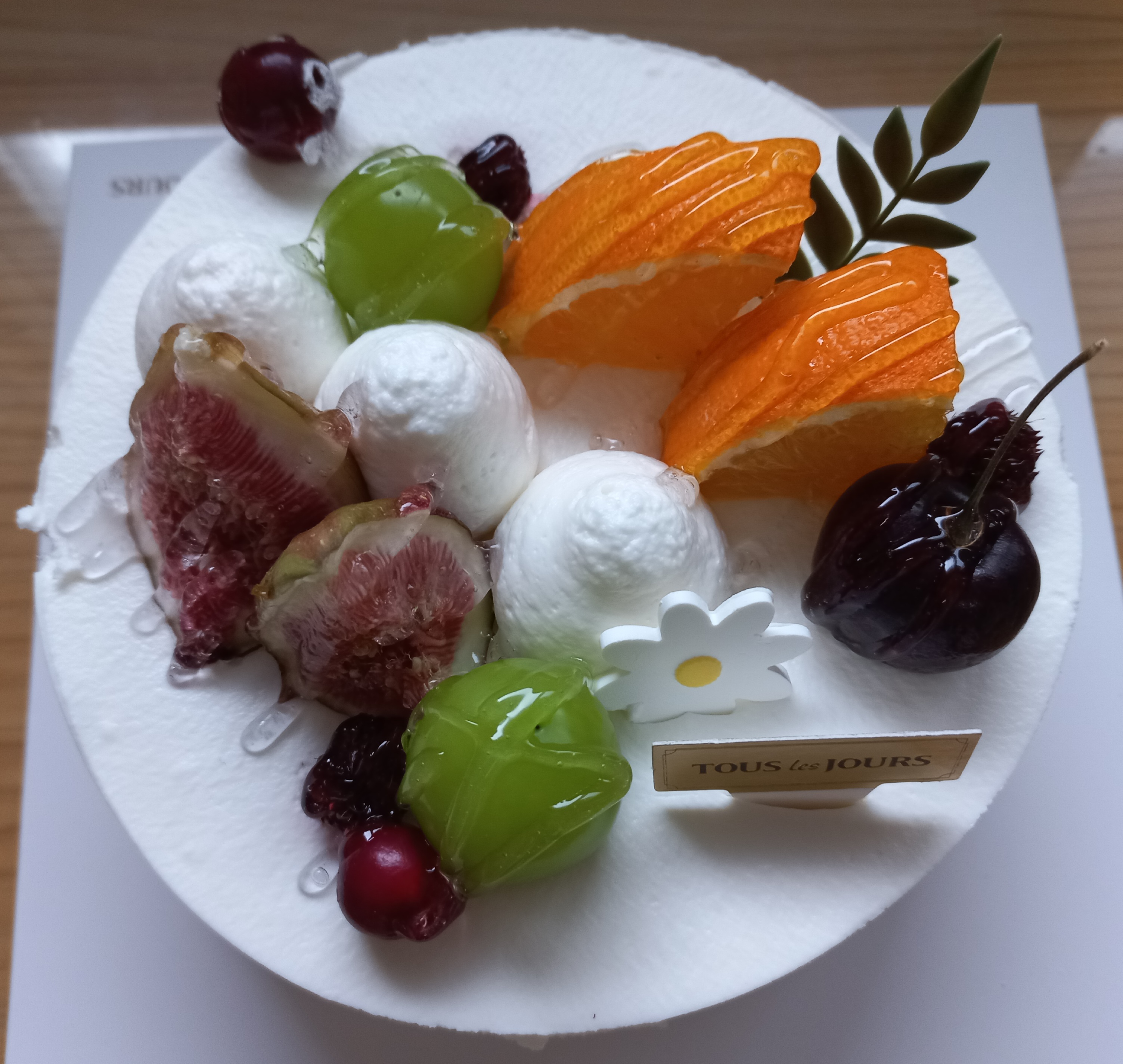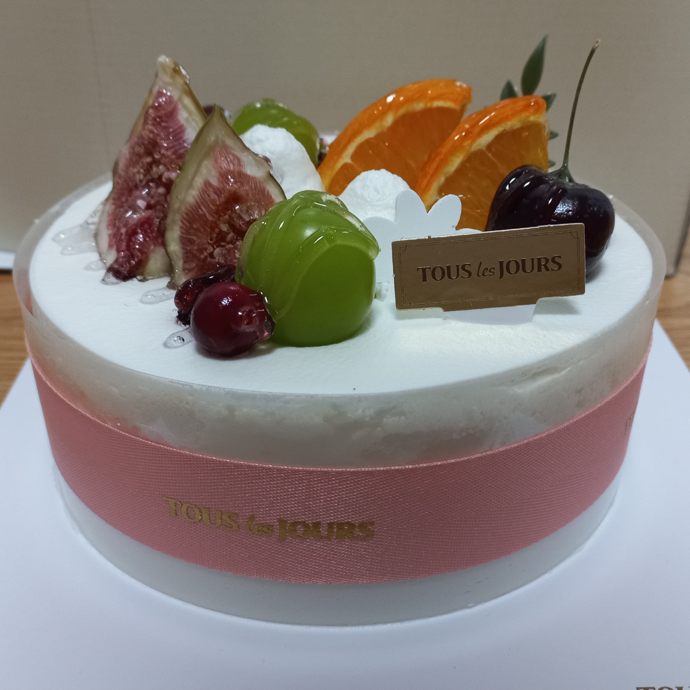 데코레이션으로 쓰인 과일은, 체리, 오렌지, 샤인머스캣, 무화과 인 것 같다~