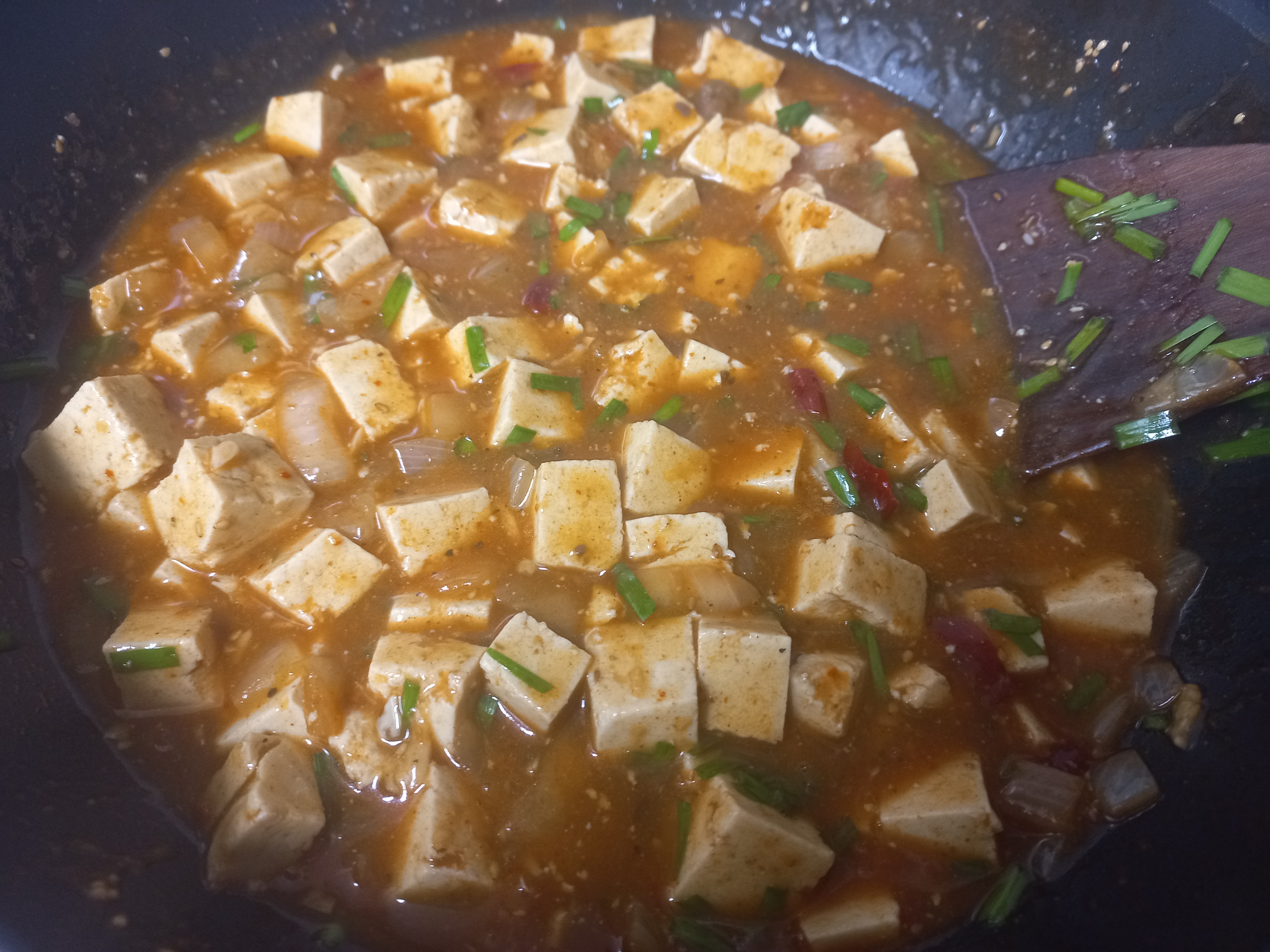 (8) 불 끄고 부추를 잘게 썰어 넣어 섞어주면 마파두부 완성